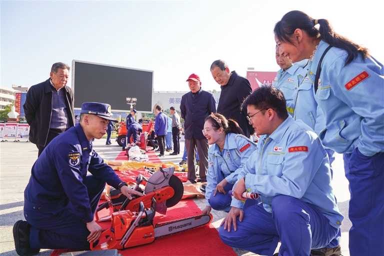 火場逃生、滅火著裝、滅火實操體驗……現場精心設置了多種消防安全體驗環節。在器材展示區、消防服體驗區,圍觀人群眾多,大家紛紛提問,了解救援破拆等專業工具用途。還穿上了滅火防護服、避火服、隔熱服等消防服裝,深感消防員在滅火救援工作中的不易。(記者 羅婉婷 實習生 彭慕予)