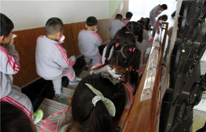 刺耳的警報聲下,孩子們拿著濕毛巾捂住口鼻、彎下腰、排著隊、有序快速的離開教室。雖然他們的表情像是在玩游戲一樣開心,但這套逃生的方法卻做得有模有樣,并在他們腦海了留下了深刻的印象。