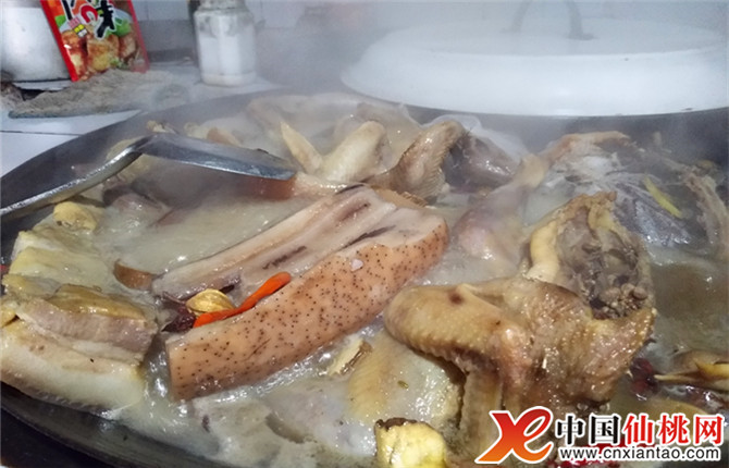 農歷臘月二十六左右,不少人家開始準備自制鹵菜,一口大鍋,鍋內上滿水,將雞、鴨、魚、肉、千張、海帶等等下鍋,再將提前備好的鹵料放入鍋內,大火燒開,然后小火慢燉,直至鹵味香氣溢出。濃郁的湯汁,醇香的鹵味,讓人是垂涎三尺。圖為2月4日除夕夜,毛嘴鎮閔臺村一村民家正在鹵菜過新年。(本網記者 盛慧慧)