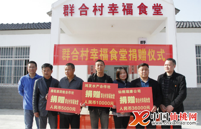 當(dāng)天,在幸福食堂門前還舉行了隆重的捐贈(zèng)儀式,仙桃瑞康公司、鴻發(fā)水產(chǎn)合作社、綠稻黑斑蛙合作社共為幸福食堂捐款51000元。